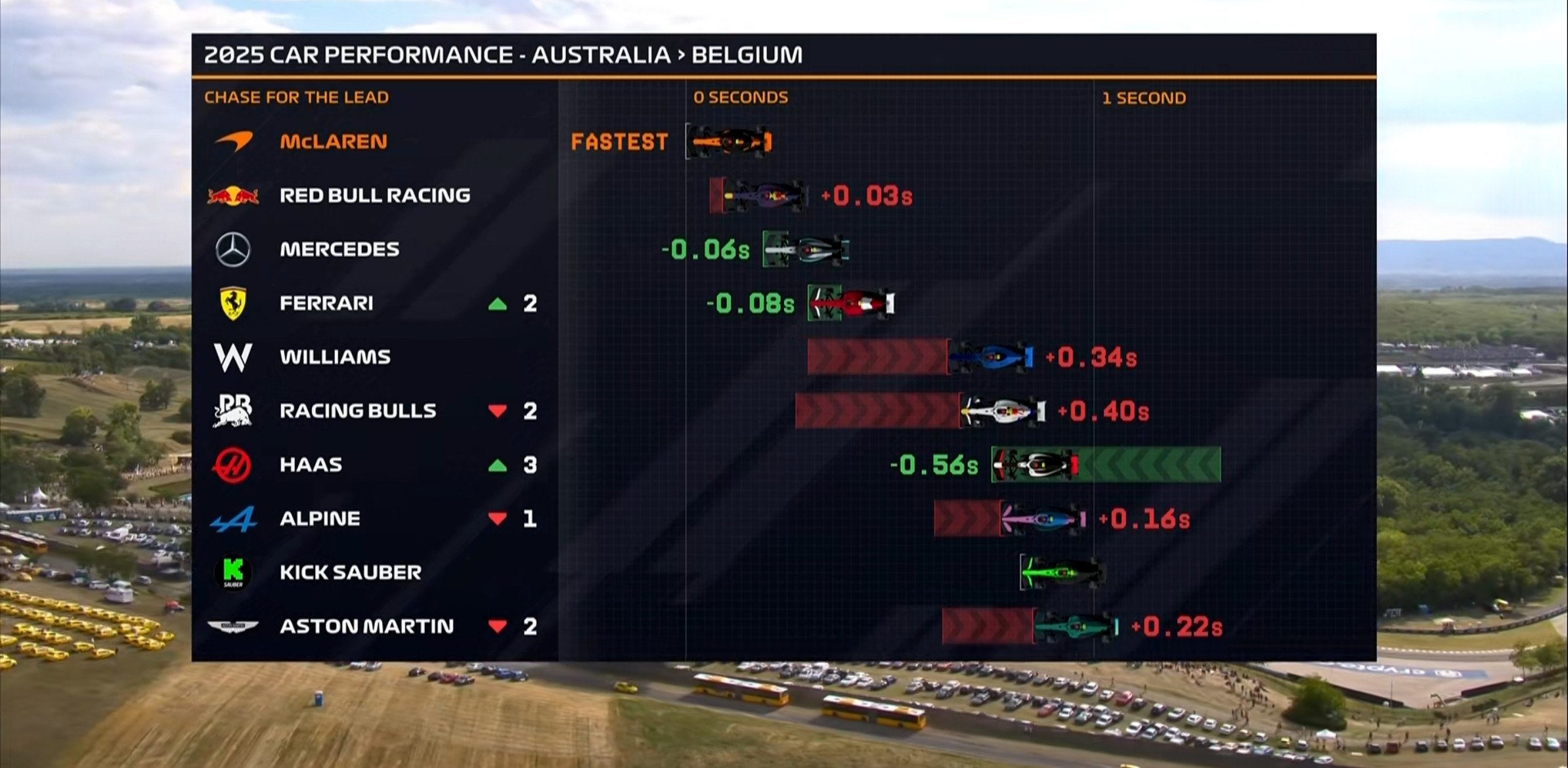 赛车升级对比:迈凯伦一骑绝尘,哈斯进步显著,火星组的剩余3辆车差距不大;