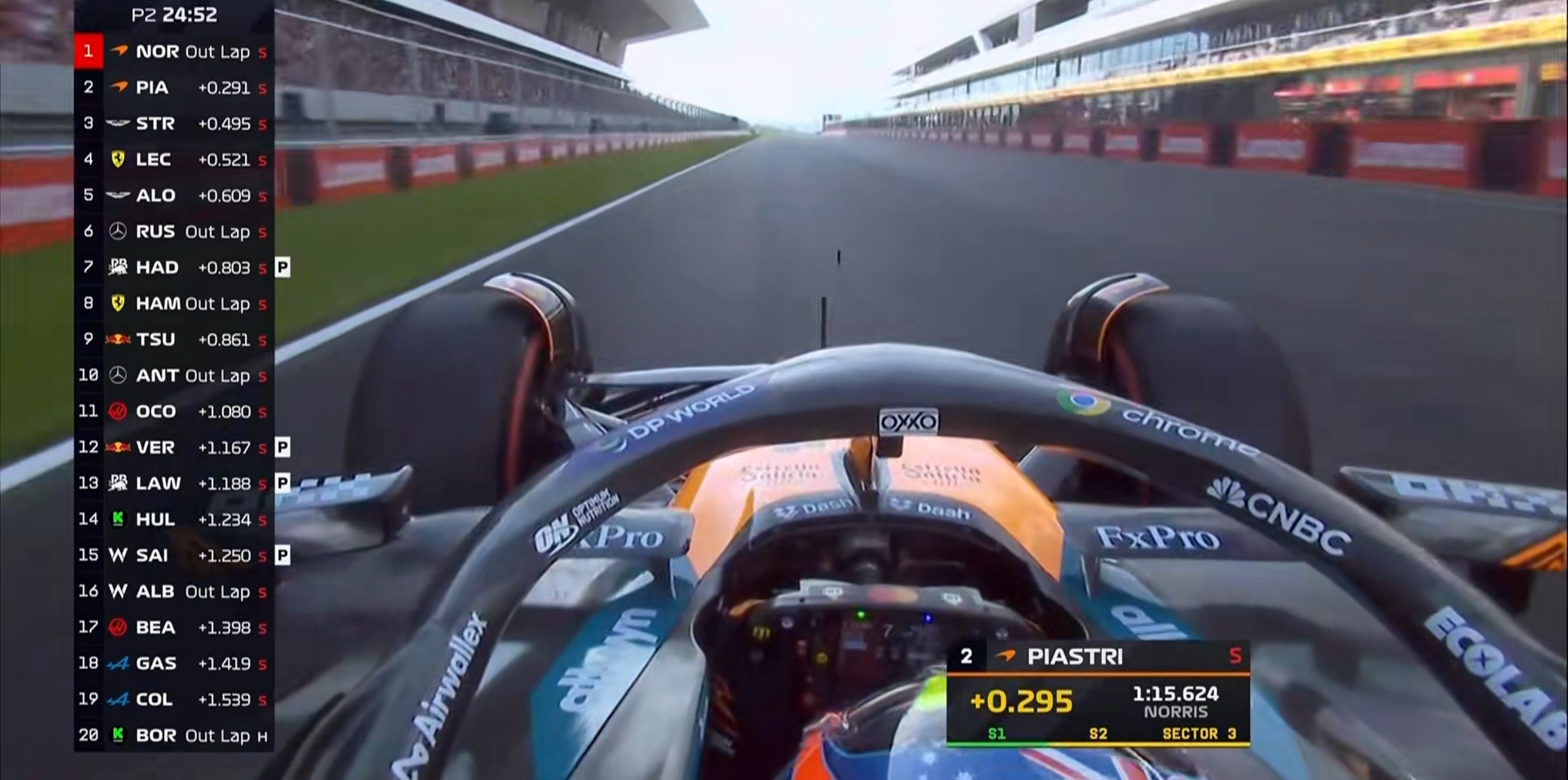 持续发力!诺里斯中性胎新的一圈两段刷紫来到榜首,领先队友0.172秒;