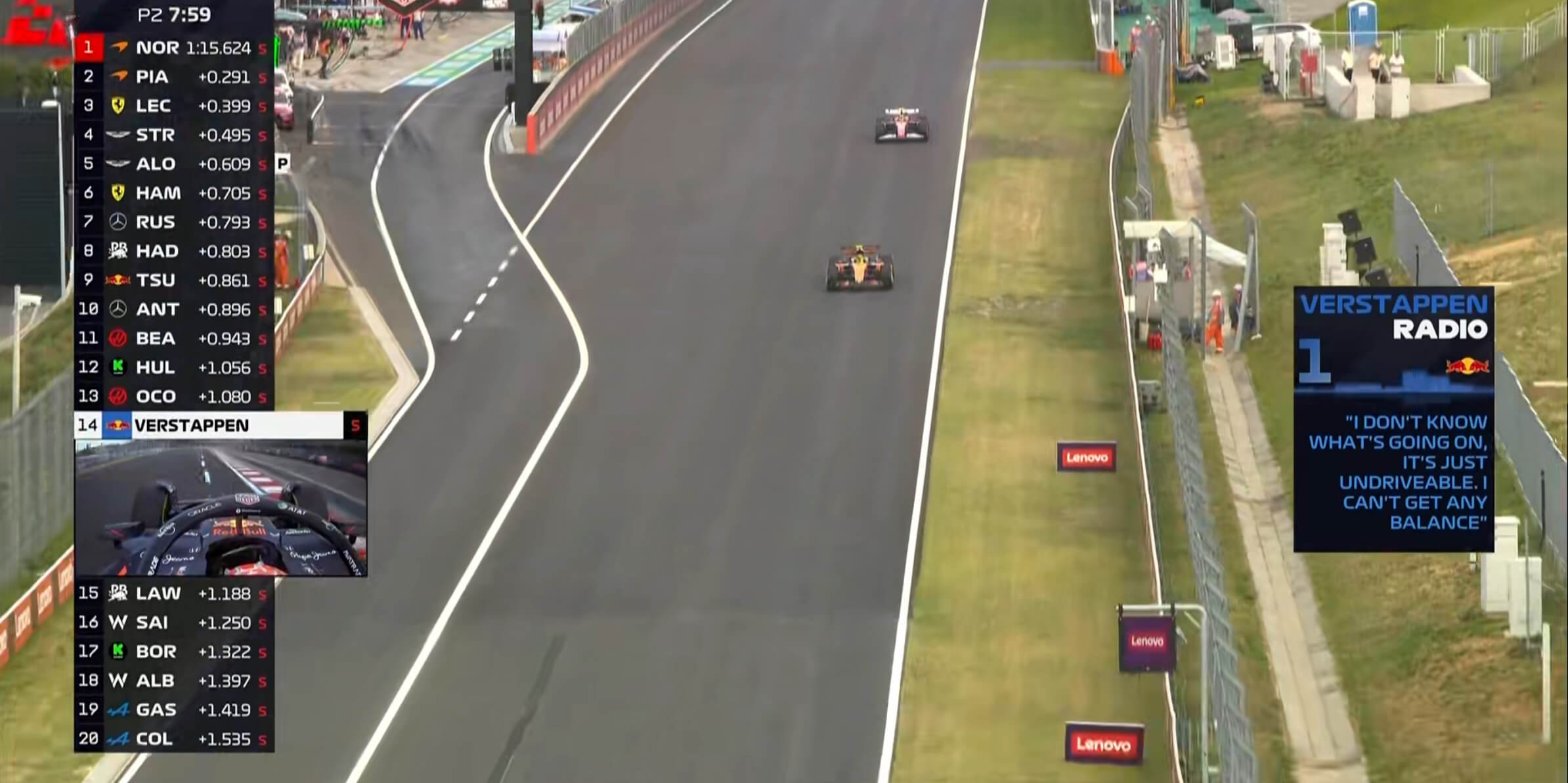 F1匈牙利二练:迈凯伦全场最快,斯特罗尔第4,维斯塔潘第14