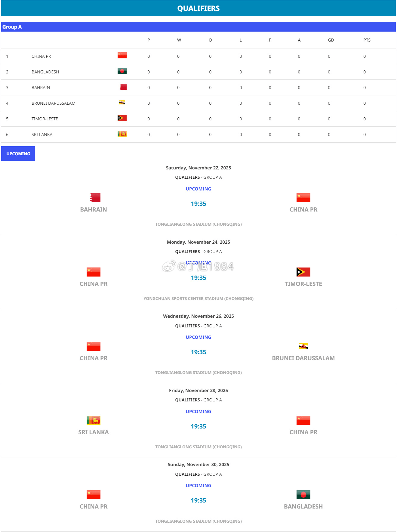 虎扑09月23日讯 媒体人丁旭消息,亚足联公布2026亚足联U17亚洲杯预选赛赛程。