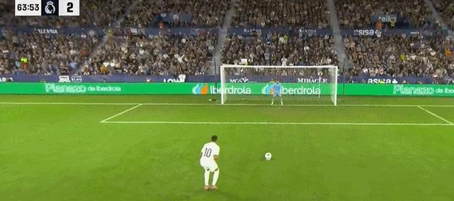 第63分钟,居莱尔直传策动反击,姆巴佩禁区内急停变向,被埃尔格萨瓦尔放倒,裁判判罚点球。第64分钟,姆巴佩亲自操刀,勺子点球命中,皇马再度扩大战果,3-1!