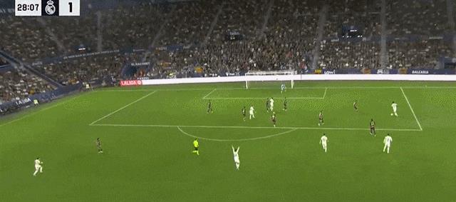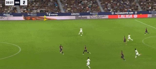 第78分钟,居莱尔右路长传,莱万特后防线出现低级失误,贝林厄姆门前吊射高出横梁。第82分钟,罗德里戈、阿拉巴和卡马文加替补登场,姆巴佩、塞瓦略斯和卡雷拉斯提前打卡。