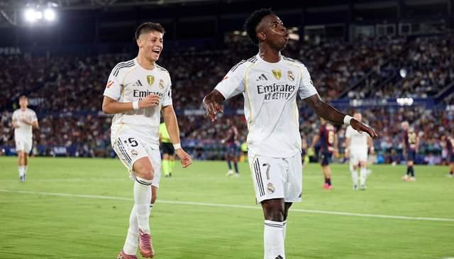 阿隆索上任之后,皇马在2025-26赛季开局状态不俗,西甲前5战保持全胜,暂列积分榜首位。本周中西甲第6轮开打,皇马也迎来三连客的第一战,对手是升班马莱万特。此役威尼修斯传射建功,姆巴佩2分钟双响,马斯坦托诺收获处子球,银河战舰4-1大胜对手,静候马德里德比。