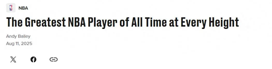 姚明入选!随着休赛期的深入,美媒《bleacherreport》也围绕身高这一话题展开讨论,晒出NBA历史上各身高最佳球员,其中詹姆斯与库里各占一席,KD则遗憾落选。