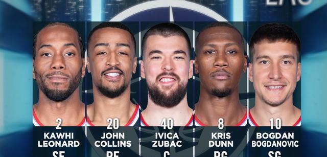 快船:祖巴茨、邓恩、莱昂纳德、科林斯、博格达诺维奇