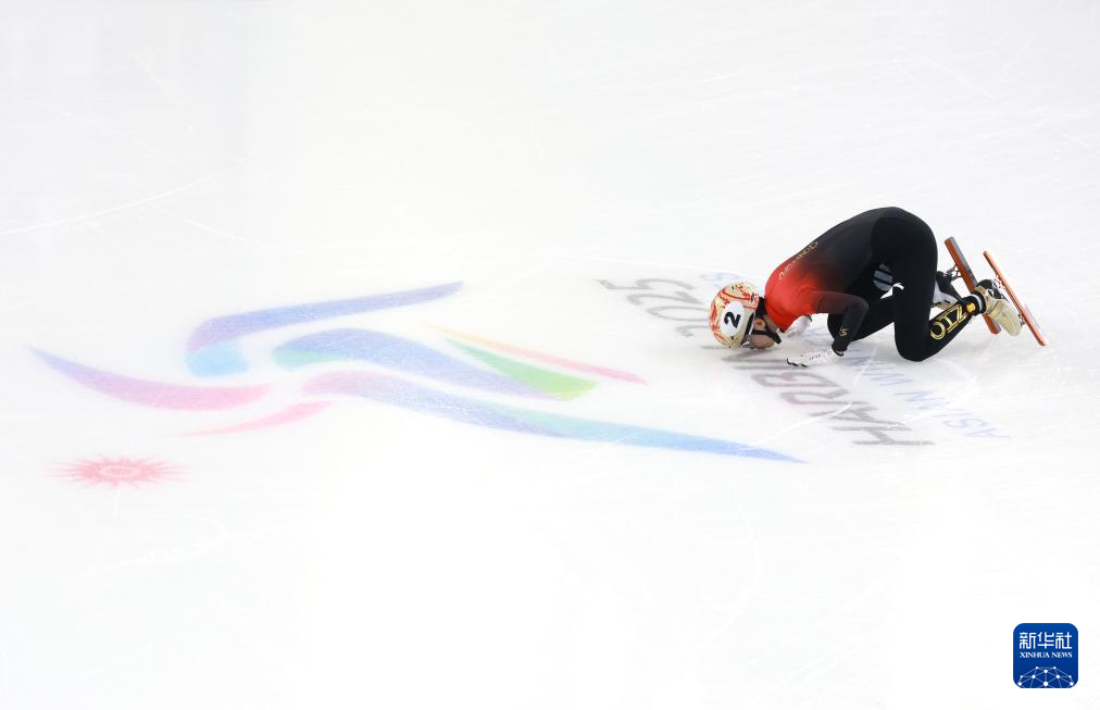 亚冬会上,范可新亲吻冰面。(资料片)新华社发